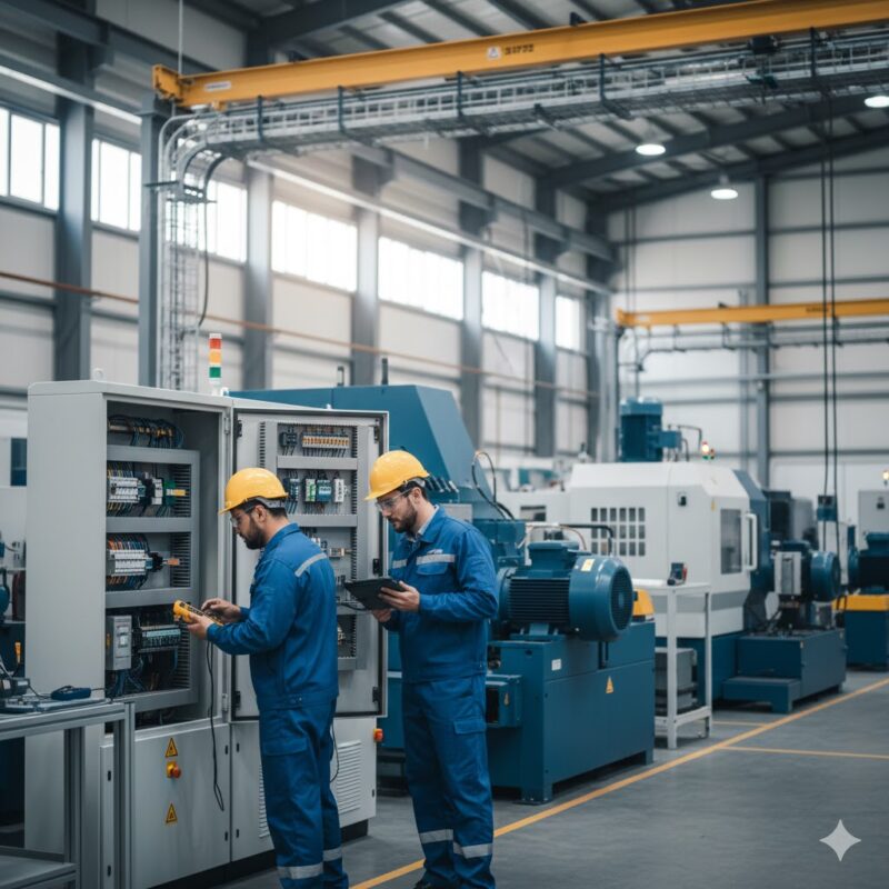 Thi công trọn gói hệ thống cơ điện: tủ điện phân phối 800A, ống luồn dây điện IMC/EMT đạt chuẩn ANSI, máng cáp dạng lưới, chiếu sáng LED công nghiệp và hệ thống chống sét kim Franklin đạt chuẩn IEC 62305. Hoàn thành 45 ngày, đạt kiểm định lần đầu.